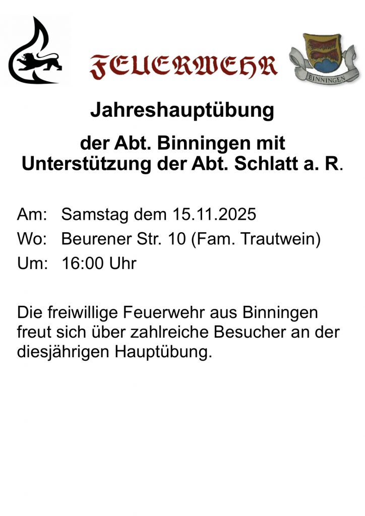 Startseite Denkt immer daran: wir machen alles freiwillig Herzlich Willkommen auf unserer Homepage! Feuerwehrübersicht Abteilung Binningen